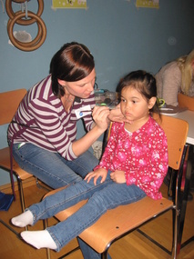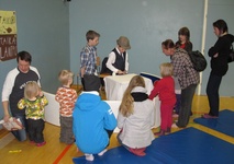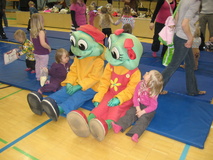 Lystisunnuntaita vietettiin sankoin joukoin 15.4.2012. |  Tykkimäen Kusti ja Kerttu-sammakot olivat lasten mieleen. |  Kasvomaalausta |